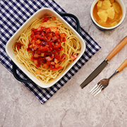 材料:中糧屯河茄汁面醬,中糧屯河番茄丁,面條,時蔬。